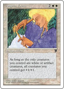 Creatures you control get +1/+1 as long as you control no nonartifact, nonwhite creatures.