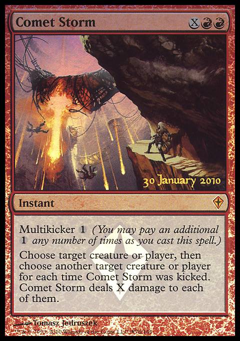 Choose target creature or player, then choose another target creature or player for each time Comet Storm was kicked. Comet Storm deals X damage to each of them.
