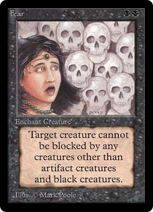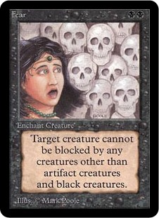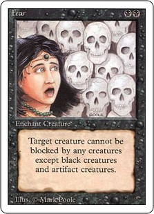 Enchanted creature has fear. (It can't be blocked except by artifact creatures and/or black creatures.)