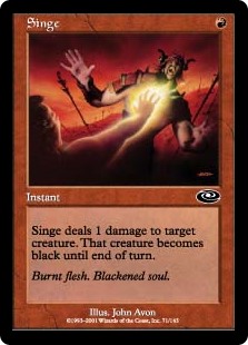 Singe deals 1 damage to target creature. That creature becomes black until end of turn.