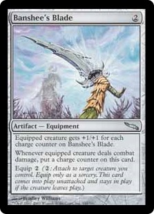 Whenever equipped creature deals combat damage, put a charge counter on Banshee's Blade.