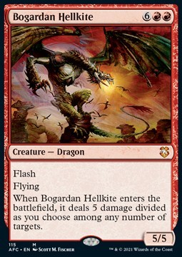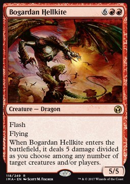 When Bogardan Hellkite enters the battlefield, it deals 5 damage divided as you choose among any number of target creatures and/or players.