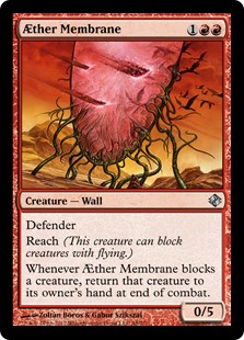 Whenever Æther Membrane blocks a creature, return that creature to its owner's hand at end of combat.