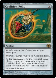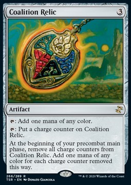 At the beginning of your precombat main phase, remove all charge counters from Coalition Relic. Add one mana of any color to your mana pool for each charge counter removed this way.
