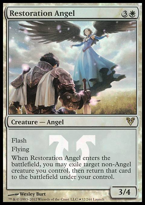 When Restoration Angel enters the battlefield, you may exile target non-Angel creature you control, then return that card to the battlefield under your control.