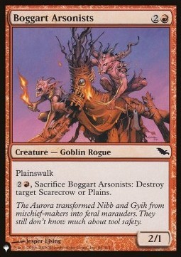 , Sacrifice Boggart Arsonists: Destroy target Scarecrow or Plains.