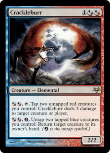 , Tap two untapped red creatures you control: Crackleburr deals 3 damage to target creature or player.