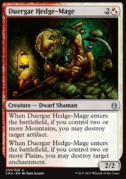 When Duergar Hedge-Mage enters the battlefield, if you control two or more Plains, you may destroy target enchantment.