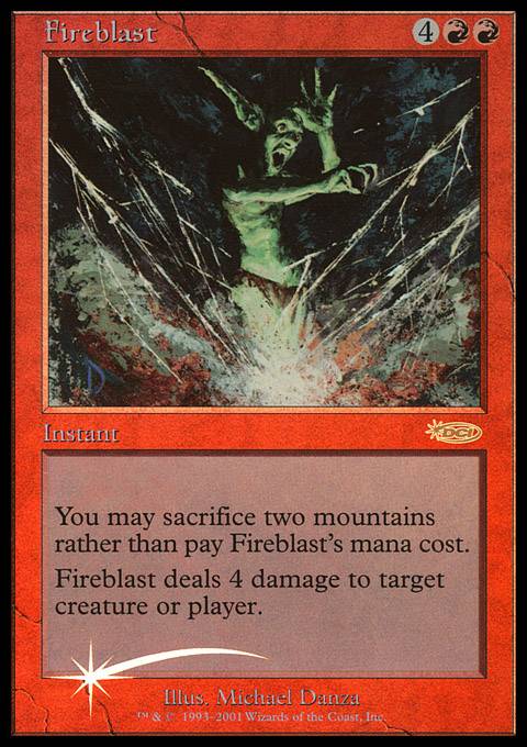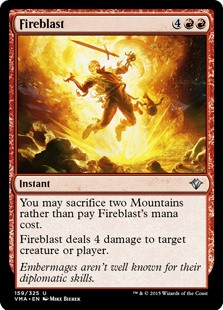 You may sacrifice two Mountains rather than pay Fireblast's mana cost.