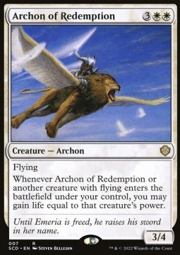 Whenever Archon of Redemption or another creature with flying enters the battlefield under your control, you may gain life equal to that creature's power.
