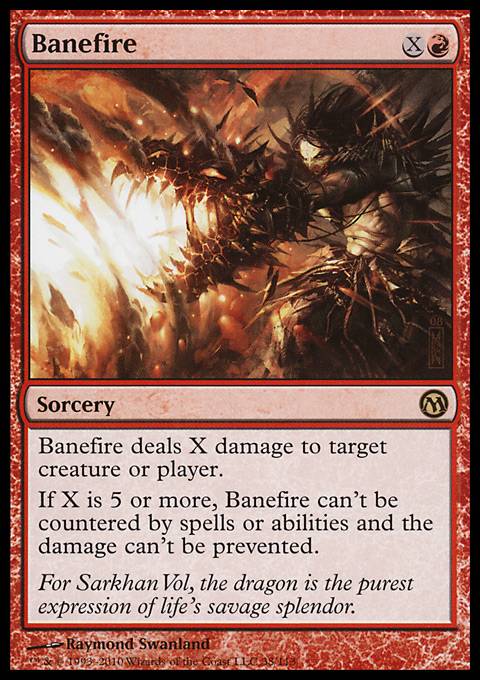 If X is 5 or more, Banefire can't be countered by spells or abilities and the damage can't be prevented.