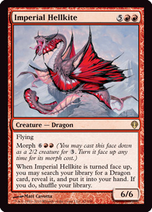 When Imperial Hellkite is turned face up, you may search your library for a Dragon card, reveal it, and put it into your hand. If you do, shuffle your library.