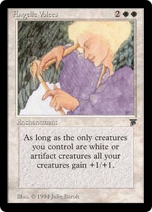 Creatures you control get +1/+1 as long as you control no nonartifact, nonwhite creatures.