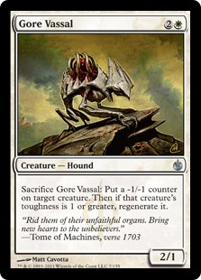 Sacrifice Gore Vassal: Put a -1/-1 counter on target creature. Then if that creature's toughness is 1 or greater, regenerate it.