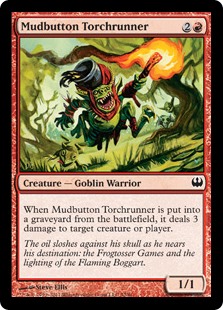 When Mudbutton Torchrunner dies, it deals 3 damage to target creature or player.
