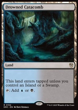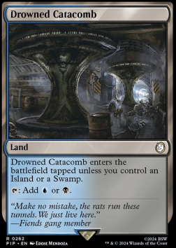 Drowned Catacomb enters the battlefield tapped unless you control an Island or a Swamp.