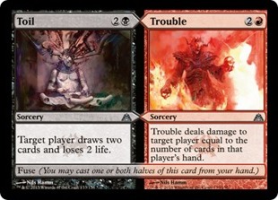 Trouble deals damage to target player equal to the number of cards in that player's hand.