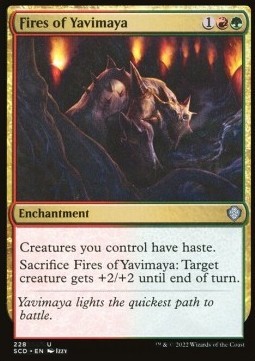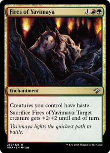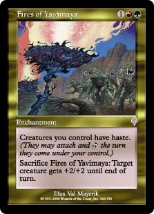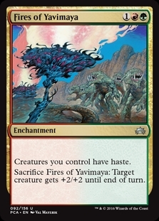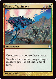 Sacrifice Fires of Yavimaya: Target creature gets +2/+2 until end of turn.
