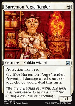 Sacrifice Burrenton Forge-Tender: Prevent all damage a red source of your choice would deal this turn.