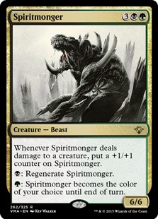 G: Spiritmonger becomes the color of your choice until end of turn.