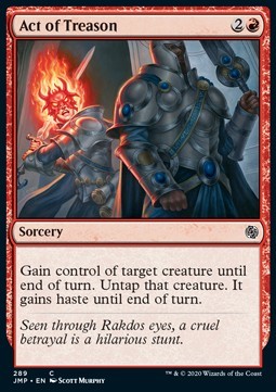 Gain control of target creature until end of turn. Untap that creature. It gains haste until end of turn. (It can attack and