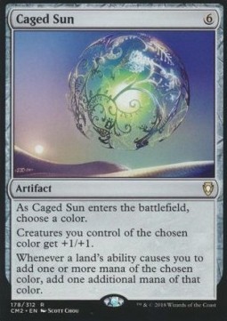 As Caged Sun enters the battlefield, choose a color.
