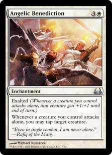 Exalted (Whenever a creature you control attacks alone, that creature gets +1/+1 until end of turn.)