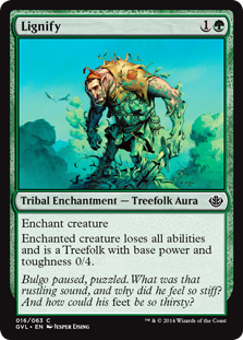 Enchanted creature is a Treefolk with base power and toughness 0/4 and loses all abilities.