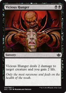 Vicious Hunger deals 2 damage to target creature and you gain 2 life.
