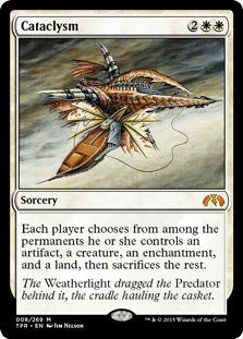 Each player chooses from among the permanents he or she controls an artifact, a creature, an enchantment, and a land, then sacrifices the rest.