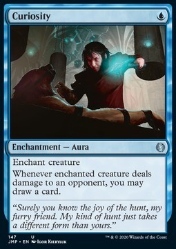 Whenever enchanted creature deals damage to an opponent, you may draw a card.