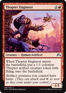 When Thopter Engineer enters the battlefield, put a 1/1 colorless Thopter artifact creature token with flying onto the battlefield.