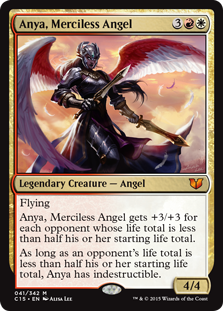 Anya, Merciless Angel gets +3/+3 for each opponent whose life total is less than half his or her starting life total.
