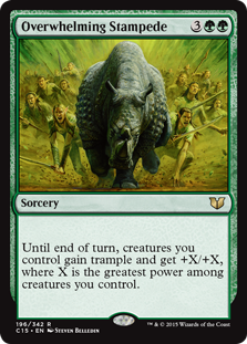 Until end of turn, creatures you control gain trample and get +X/+X, where X is the greatest power among creatures you control.