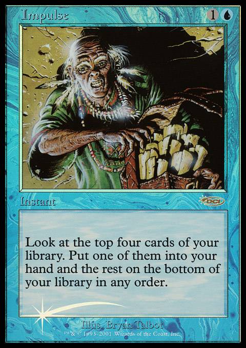 Look at the top four cards of your library. Put one of them into your hand and the rest on the bottom of your library in any order.