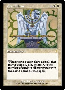 Whenever a player casts a spell, that player gains X life, where X is the number of cards in all graveyards with the same name as that spell.