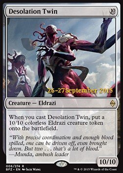 When you cast Desolation Twin, put a 10/10 colorless Eldrazi creature token onto the battlefield.