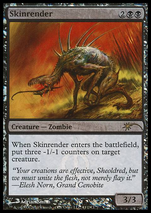 When Skinrender enters the battlefield, put three -1/-1 counters on target creature.