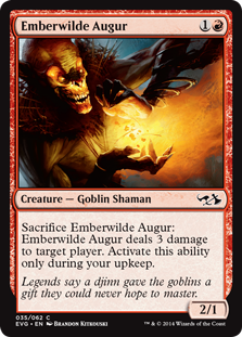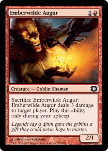 Sacrifice Emberwilde Augur: Emberwilde Augur deals 3 damage to target player. Activate this ability only during your upkeep.