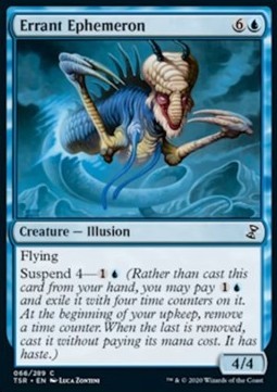 and exile it with four time counters on it. At the beginning of your upkeep, remove a time counter. When the last is removed, cast it without paying its mana cost. It has haste.)