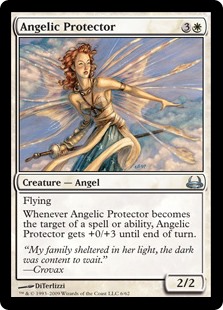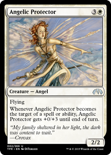 Whenever Angelic Protector becomes the target of a spell or ability, Angelic Protector gets +0/+3 until end of turn.