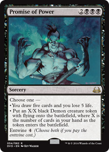 • Put an X/X black Demon creature token with flying onto the battlefield, where X is the number of cards in your hand.