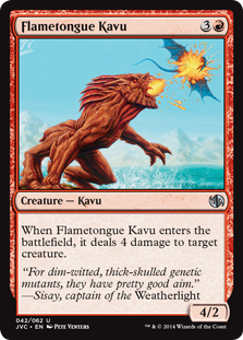 When Flametongue Kavu enters the battlefield, it deals 4 damage to target creature.