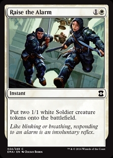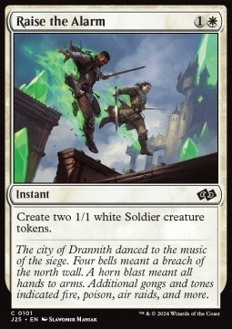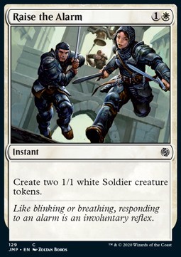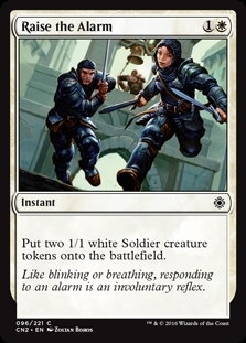 Put two 1/1 white Soldier creature tokens onto the battlefield.