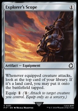 Whenever equipped creature attacks, look at the top card of your library. If it's a land card, you may put it onto the battlefield tapped.