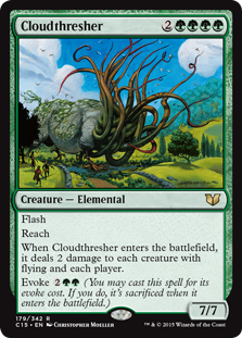 When Cloudthresher enters the battlefield, it deals 2 damage to each creature with flying and each player.