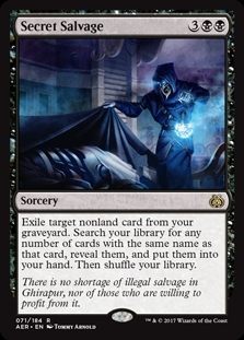 Exile target nonland card from your graveyard. Search your library for any number of cards with the same name as that card, reveal them, and put them into your hand. Then shuffle your library.