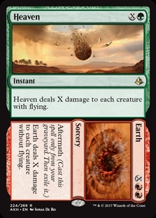Heaven deals X damage to each creature with flying.