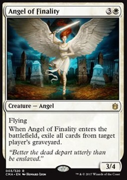 When Angel of Finality enters the battlefield, exile all cards from target player's graveyard.