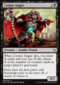 When Corpse Augur dies, you draw X cards and you lose X life, where X is the number of creature cards in target player's graveyard.
